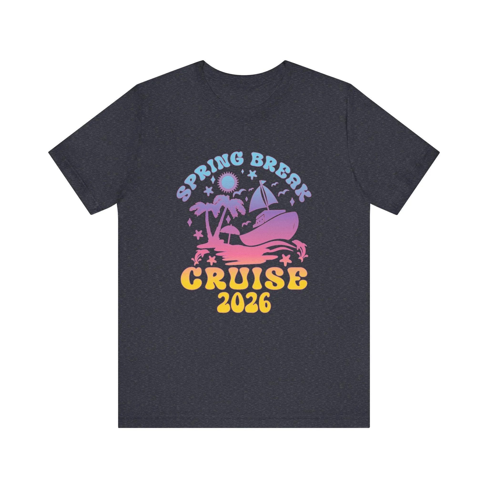 Spring Break Cruise 2026 Tee | Beach Boat Palm Trees Retro Sunset
